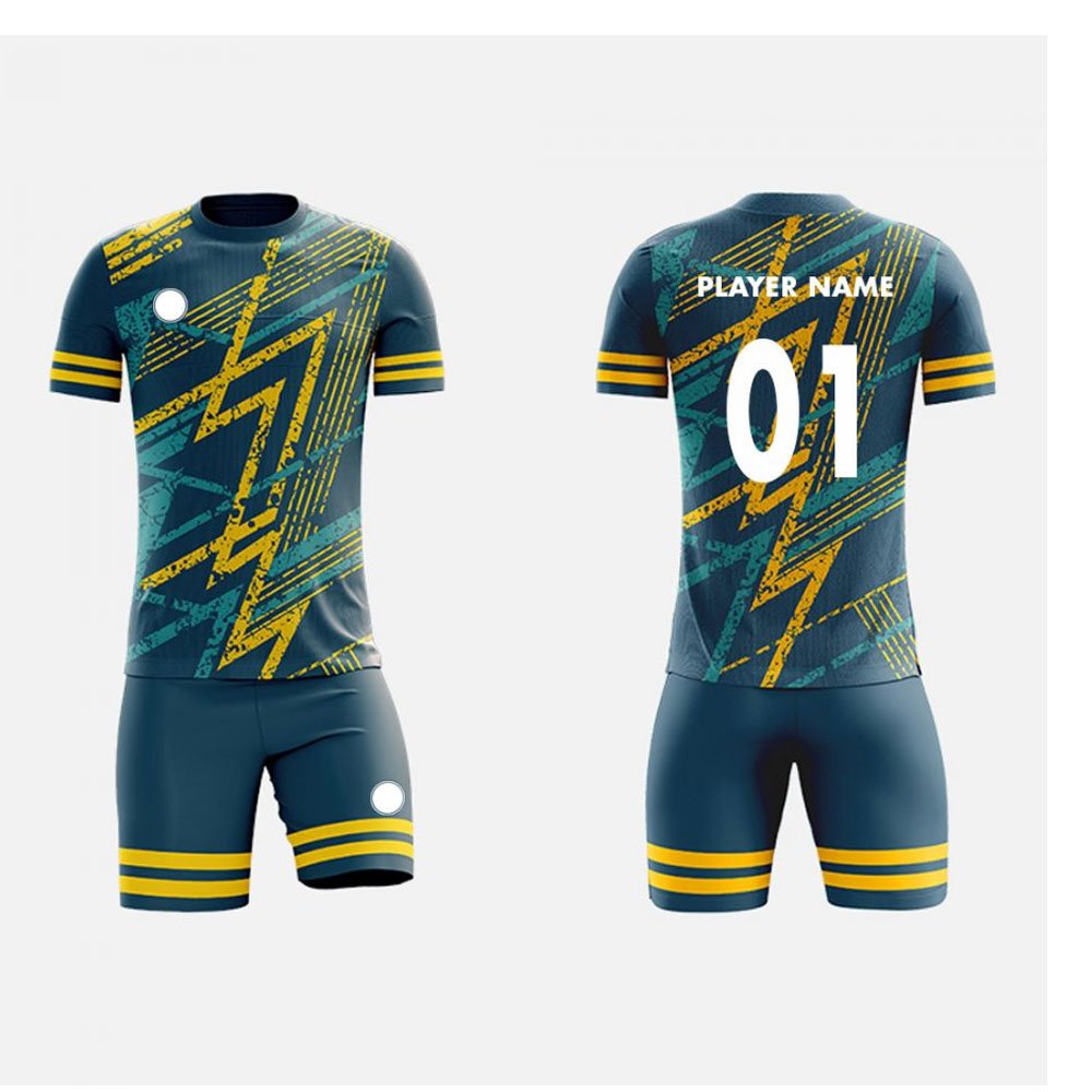 Product: Personalized soccer Uniform. Material: 100% polyester Features: Breathable, Quick Dry, Absorbent Technics: Full Sublimated Printing Color fastness: Level 4 Design: Custom Design Colour: Custom Color Size: Custom Size Logo: Screen printing, heat transfer, sublimation, embroidery