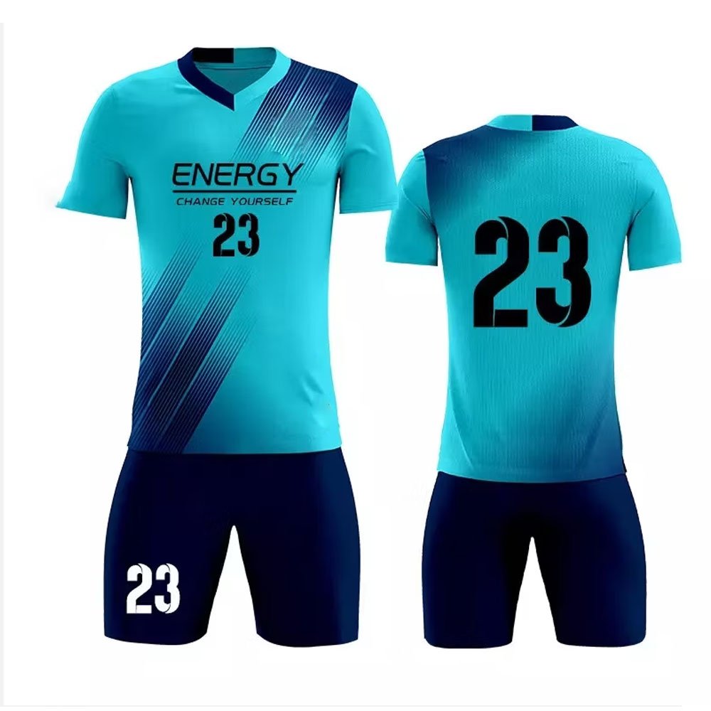 Product: Personalized soccer Uniform. Material: 100% polyester Features: Breathable, Quick Dry, Absorbent Technics: Full Sublimated Printing Color fastness: Level 4 Design: Custom Design Colour: Custom Color Size: Custom Size Logo: Screen printing, heat transfer, sublimation, embroidery
